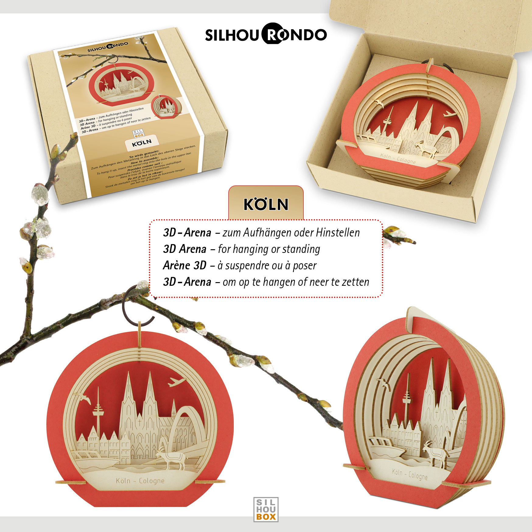 Stadtansicht von Köln in 3D, zum Anhängen an den Weihnachtsbaum oder zum hinstellen.