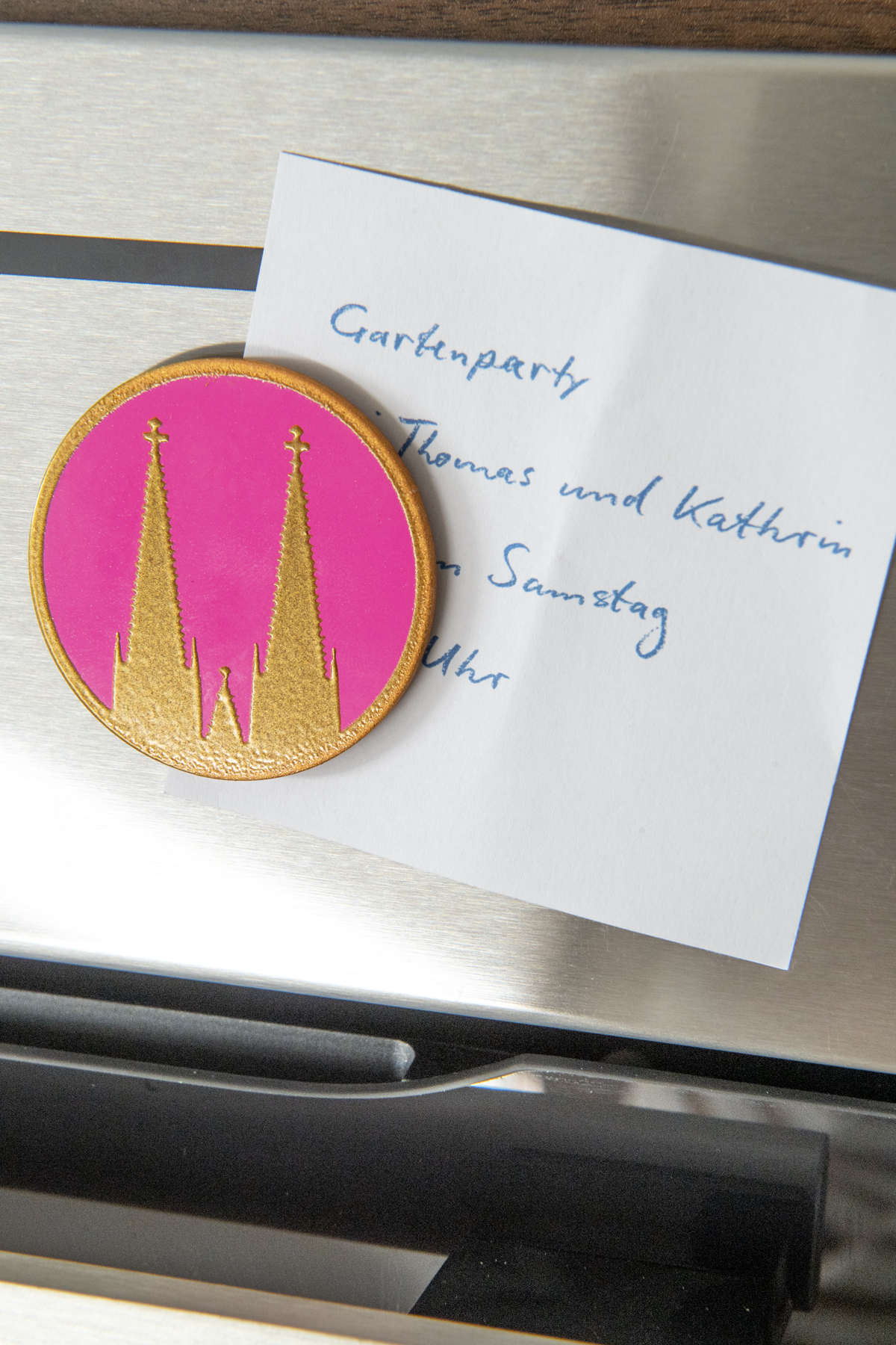 50 mm Stahlronde, 2-fach beschichtet mit selbstklebendem Neodym-Magnet auf der Rückseite.